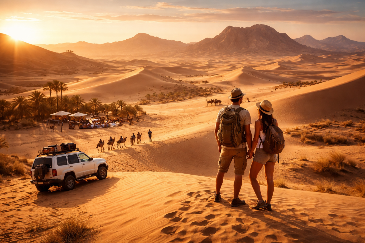 L'Avventura nel Deserto ti offre la possibilità di sfidare te stesso in un ambiente selvaggio e affascinante. Attraversa dune di sabbia, percorri sentieri nascosti e scopri la magia di un luogo che sembra fuori dal tempo. La nostra squadra di esperti ti guiderà nel cuore del deserto, fornendoti tutto il necessario per un'avventura sicura e entusiasmante. Pensa a quanto sarebbe emozionante svegliarsi con il calore del sole sul viso, montare su un dromedario e iniziare un viaggio attraverso il deserto. Preparati a esplorare uno dei luoghi più affascinanti del mondo e a creare ricordi che dureranno per sempre.